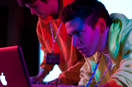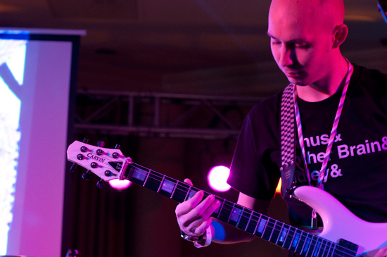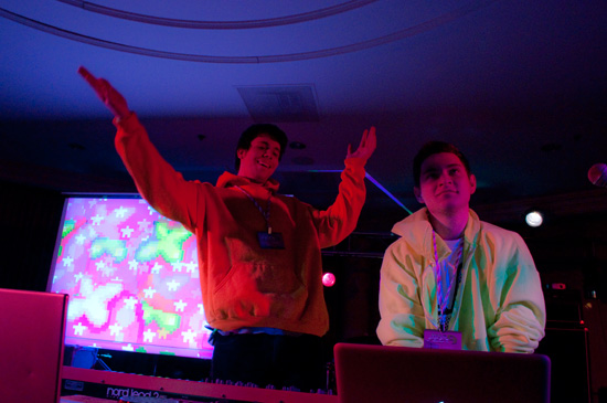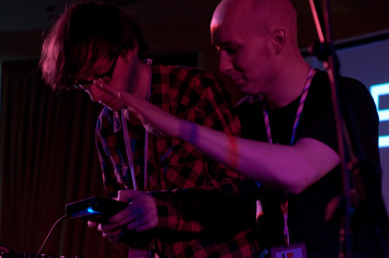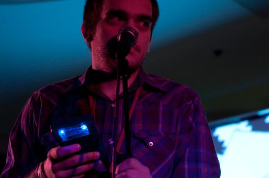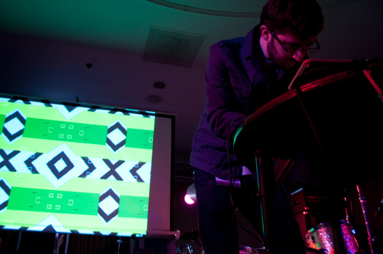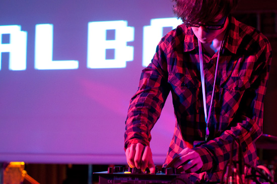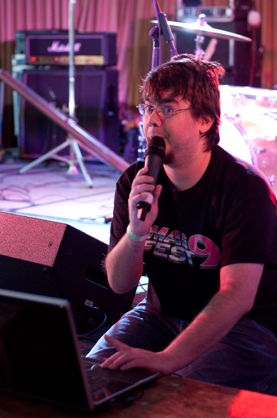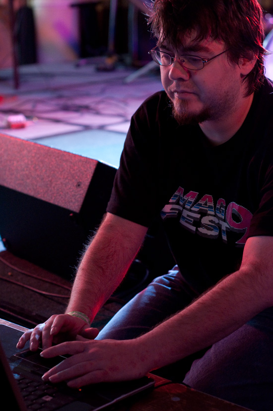 After a presentation on chip music history from Zen Albatross and a brief Q&A with some of the artists, MAGFest head honcho Brendan Becker, known in chiptune circles as Inverse Phase, opened the show with a demonstration of his elaborate NES cover songs from his laptop. His arrangements were extremely impressive and had the audience bopping along to 8-bit versions of CeeLo Green’s “F-You” and Blur’s “Song #2,” among others. It’s amazing that even while going crazy running the event, Mr. MAGFest still had time to grace us with his music.