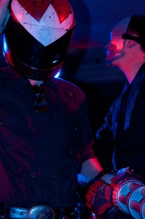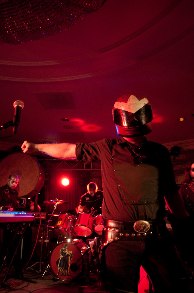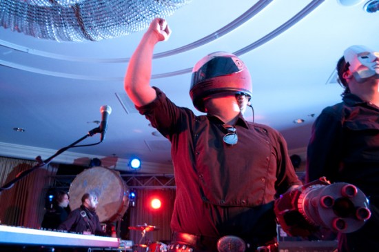 The Protomen wrote a rock opera that is loosely based on the characters in the Mega Man franchise. They’re also a total of ten performers, with tons of talking, singing, chanting, and stage props. They know how to rock, and they know how to attract a crowd. I’d estimate that the first six rows of people packed in (50 to 80 people) were singing along to every last word. Their songs are about a dystopian future, and how the few “heroes” left do or do not learn to work together. They have Mega Man and Proto Man helmets, and arm cannons, and the guys put on silver face paint whereas the girls put on what looks like KISS paint, but only the black lines (none of the white fill). They look awesome and they sound awesome. Later this week, to give you a better idea of what these guys are about, in a feature article called “Who ARE The Protomen?”