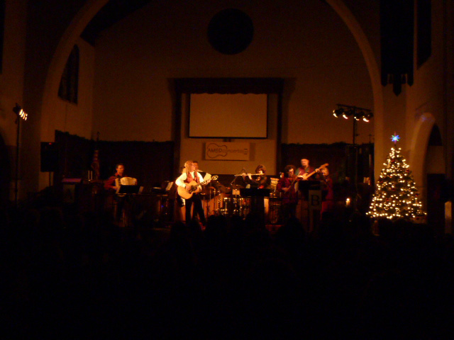 The venue itself, AMSDconcerts, is actually a Methodist church, making for a fitting albeit somewhat different kind of venue for a concert. The audience was seated in the pews, with Arkenstone and his band on the front stage. A Christmas tree lit up one side of the stage, but aside from a single light at the center of the stage, there was a certain dark and rustic quality to the setup that made enjoying this holiday music even more special.