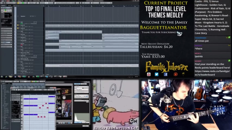 Game music cover artist Jules “FamilyJules” Conroy is known on YouTube for his metal guitar covers. His more recent projects have been Top 10 lists of tunes voted for by the audience. Conroy gives his fans a behind-the-scenes stream of the upcoming game music covers that he’s working on. This usually ends up being the tracking work that he’s doing for the next Top 10 game music arrangement. While he doesn’t stream the entire production process, it’s a good glimpse at the process of recording the guitar and bass tracks for the covers. The streaming schedule is tentative at the moment, but you can follow and watch the Twitch stream here.