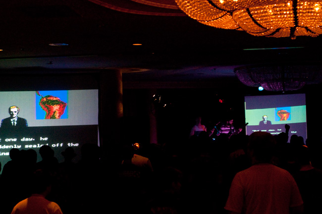 Last night MAG kicked off with its first night of concerts, featuring VGM cover bands X-Hunters, Rare Candy and Bit Brigade. The latter definitely was the stand-out of the night, providing the soundtrack to a live speed-run of Ninja Gaiden projected on enormous screens. The guy playing managed to make it through the entire game without getting hit more than a handful of times while the band itself followed along with uncanny precision, proving that the most exciting (and least frustrating) way to play Ninja Gaiden is having it performed for you.