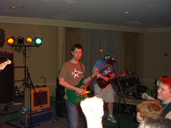 After that, Rare Candy was up. This was another rock band, but they had more keyboard than guitar going for them. The arrangements were unique, sometimes like a jam band, and they really knew how to get the crowd going. Their arrangement of Chrono Trigger‘s “Undersea Palace,” which went on for a solid six or seven minutes, blew me away. They worked in Schala’s Theme as a transition/bridge, and when they came back on the reprise: oh man. It’s something all game music fans need to experience. A live concert with a dude rocking the bass and another dude rocking the drums, just pounding out the notes to one of Mitsuda’s best tunes. I loved it. And their final track? The castle music in Super Mario World. Wow! I didn’t even realize how rich that melody was until I heard Rare Candy lay it out. Count me impressed.