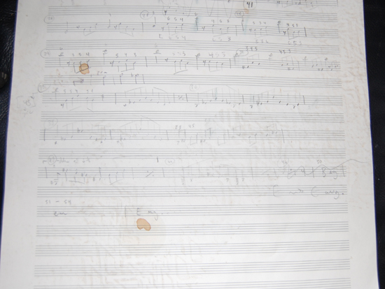 [Matt Uelmen’s filthy hand-written sheet music for “Theme of Town”]