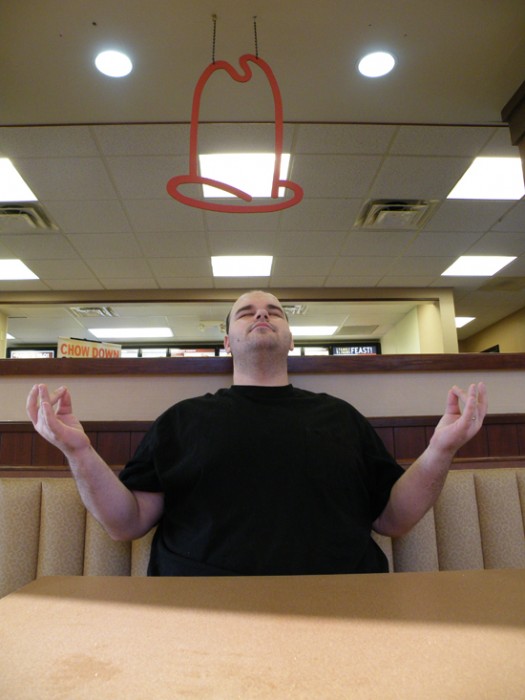 I did want to give an honorable mention to Joecam, who always sends over hilarious entries. You can see his entry as well as a shot that I took in a polar bear den at Seaworld, demonstrating that I have no idea how to meditate. Check them out after the jump.