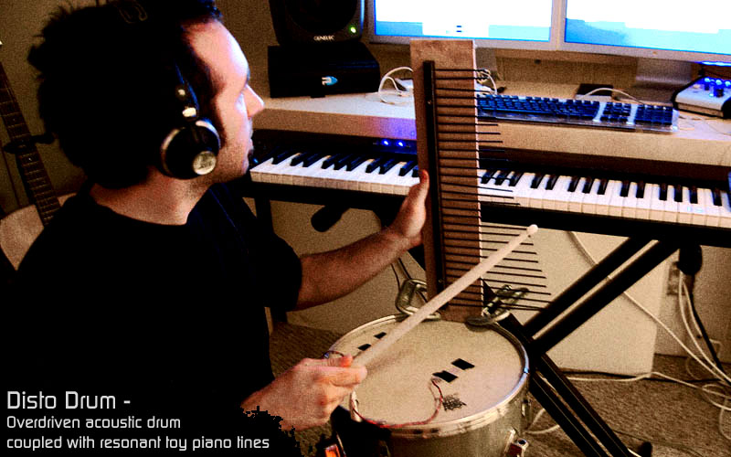 Also for The Conduit I assembled some strange instruments. For example, I built a “contrabass” out of a big metallic heater. I used that to record grungy bass lines and transitional effects. I combined an old signal generator with an optical theremin to create wild electronic sounds and huge booming basses. Plus other unusual reamping techniques, like a megaphone pointed inside a small kick drum used as a resonator.