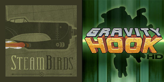 Things have been busy for game composer Daniel Baranowsky. Amidst the madness of last week’s Game Developer’s Conference, the man behind the music of Ed McMillen’s wall jumping platformer Super Meat Boy and Adam Atomic’s one-button rooftop hopper Canabalt has released soundtracks for two more indie game projects. First is Armor Games’ SteamBirds, a top-down aerial combat game with a unique turn-based strategy engine. Baranowsky’s sweeping orchestral score might be only five tracks in length, but it’s still some of the most epic composition I’ve ever heard for a browser-based Flash game. Danny has also released the soundtrack for Adam Atomic’s Gravity Hook HD, another insanely addictive Flash game that’s free-to-play online, with an iPhone version forthcoming. The album includes 7 tracks from the game, as well as the full soundtrack from the original Gravity Hook.